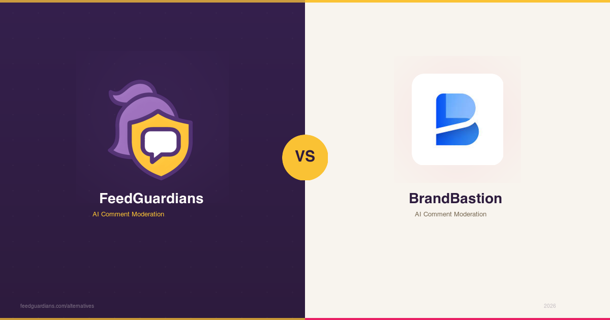 FeedGuardiansBrandBastion's AI moderation is impressive, but at $208-999/month, it's built for enterprise budgets. FeedGuardians delivers comparable AI comment moderation, spam detection, and brand protection starting at just $39/month.